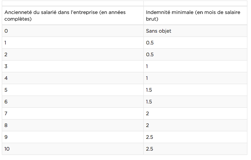 Il est essentiel de retenir que le minimum légal d’indemnisation a été réduit de moitié pour les entreprises de plus de 11 salariés. Quant au maximum, il ne dépassera pas les 20 mois de salaire qu’elle que soit l’ancienneté du salarié.